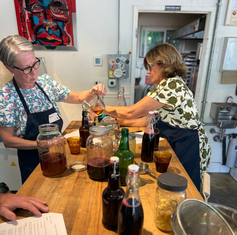 Fermented sodas from scratch including Jamaica hibiscus and Lemon Balm. Take home your own ginger bug culture.